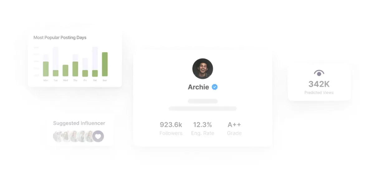 Get performance forecasts with up to 80% accuracy. Evaluate creators based on engagement, reach, and content quality—powered by AI.